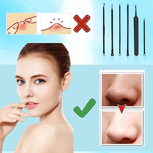 Punti Neri strumenti Rimozione Punti Neri Naso,Kit Rimozione Punti Neri Naso Leva, Punti Neri strumenti Rimozione,Estrattore di Acne,Utensile di Rimozione di Acne,Punti Bianchi, Uomini (6pcs-nero)