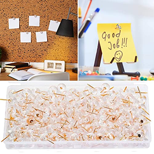 Puntine da Disegno 100pcs Puntine da Disegno Trasparenti Puntine da Disegno Chiodini Puntine Rotonde Plastica Mappa Puntine da Disegno Map Pins Puntine per Bacheca in Sughero Spilli Lavagna Oro Rosa
