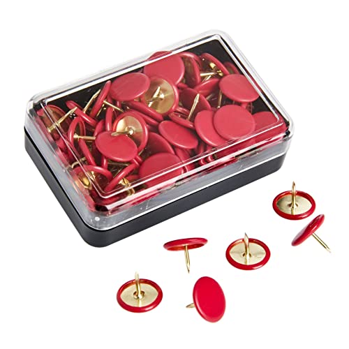 Puntine colorate da disegno nichelate dorate con copertire in plastica lucida colorata, puntine ottonate, scatola da 50 pz, colore: rosso
