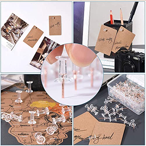 ✅Facile Inserimento: Le punte affilate di queste puntine trasparenti con testa in plastica consentono un facile inserimento per una varietà di superfici tra cui legno e sughero.