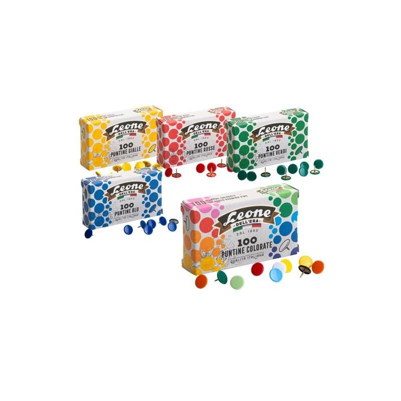 Puntine da disegno conf. 100 Con testa plastificata colorata. Scatoline di cartone da 100 pezzi Colore Verde