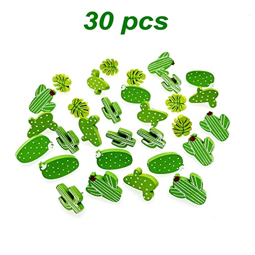 JZK 30 x puntine in legno verde a forma di foglia di cactus e monstera per lavagna in sughero, simpatiche puntine da disegno in legno, spille decorative per bacheca, spille da bacheca funky