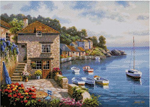 Kit punto croce raffigurante la riva di un lago, filo di cotone egiziano (14 fili), dimensioni: 54 x 42 cm (240 x 171 punti)
