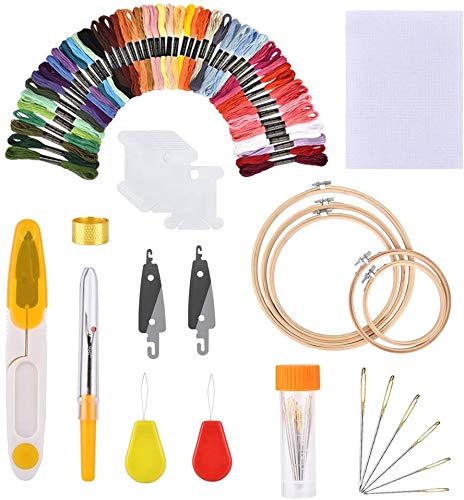 Kit Punto Croce, Kit Ricamo, Compresi 100 Colori Fili Ricamo, 5 Telaio per Ricamo, 2 Tela Aida e Set di Ago Magico per Punto Croce, Matassine Punto Croce Kit da Ricamare