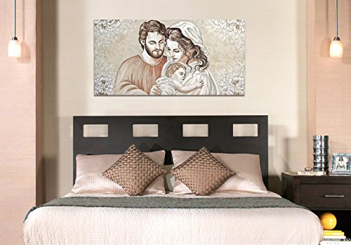 Punto Digital Quadro Capezzale Sacra Famiglia Home cm.120x60 Moderno Intelaiato Stampa su Tela Cotone Telaio in Legno Spessore cm.2