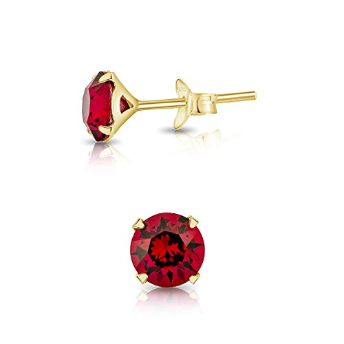 Orecchini Rubino Rosso - Punti Luce Orecchini Colorati - Orecchini con Brillantini - Punto Luce Orecchini Dorati - Orecchini Piccoli Argento 925 placcati Oro - Orecchini Donna Oro Giallo - Orecchini Colorati - Vero Argento Sterling Placcato in Oro Giallo timbrato 925 con Autentici Cristalli Swarovski