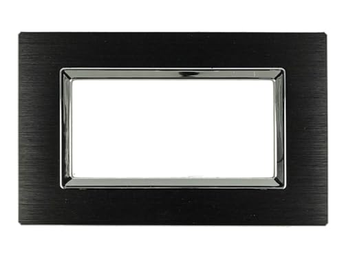 Puntoluceled Placca Compatibile Matix Acciao Metallo Satinato Argento Chiaro, Argento Scuro, Brown Marrone, Nero, Oro, Placche per supporti e interruttori 3m 4M 6M (4 MODULI, NERO)