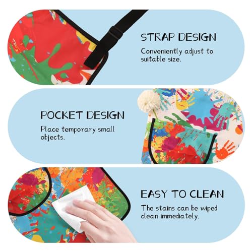 【Design raffinato】Progettato con una tracolla regolabile e lacci in vita, con un elastico sul retro per una migliore vestibilità e ha una grande tasca per penne ad acqua, vernici, asciugamani di carta e altri oggetti. Con un grazioso motivo a pennello, questo set di grembiuli è adatto sia per ragazzi che per ragazze.