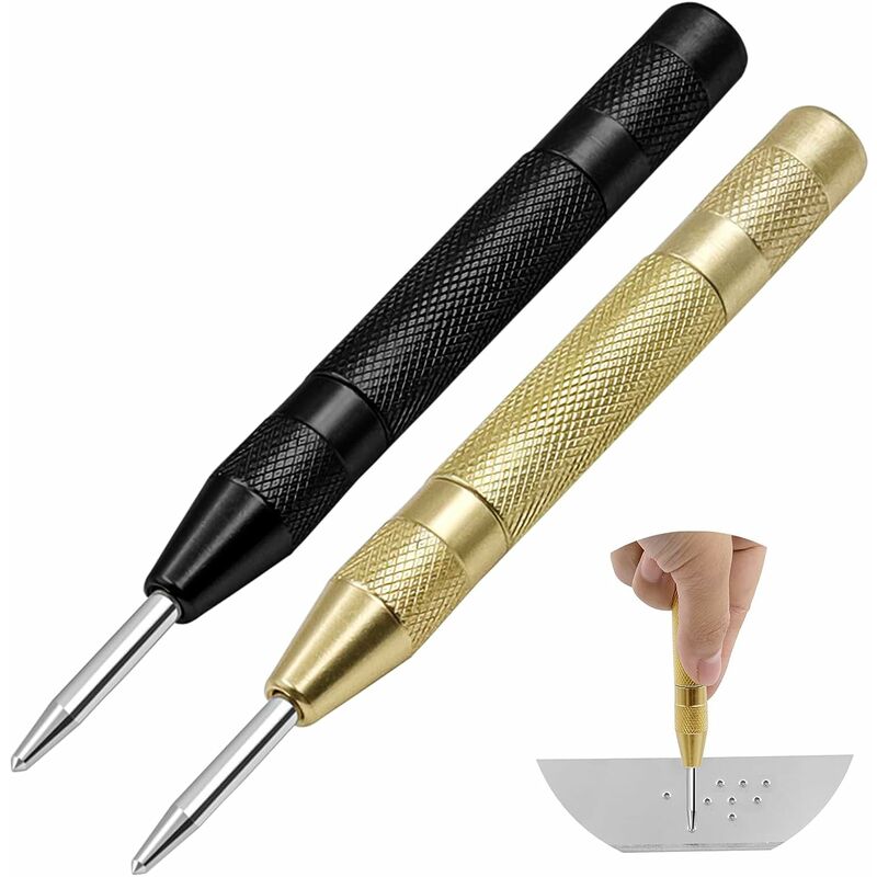 Materiale di alta qualità Il guscio del punzone a molla è realizzato in acciaio al carbonio, la molla interna è in acciaio inossidabile, impermeabile e antiruggine, ad alta resistenza, non facile da rompere, durevole Design unico La superficie antiscivolo del gambo del chiodo a molla offre comfort e riduce l'affaticamento dell'utente, mentre la punta centrata con precisione migliora la lavorazione e il controllo per fori ben posizionati. più precisione. Punzone centrale automatico regolabile con molla incorporata per regolare la tensione per il sollevamento, la marcatura, la foratura e l'impilaggio leggeri e pesanti. È possibile regolare il cappuccio in senso orario o antiorario. in senso orario per farlo bene e mantenerlo giusto Facile da usare Premi con decisione la maniglia, spingila verso il timbro per allinearla al punto di posizionamento, la forte molla fa rimbalzare il timbro con forza. Nessun attrezzo richiesto come martelli, funzionamento con una sola mano, facile da usare