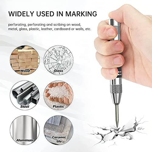 【Uso versátil】La punzonadora automática es una herramienta de seguridad en el coche. Este producto puede funcionar en vidrio, lo que significa que puede romper fácilmente la ventana del automóvil para que pueda escapar en caso de emergencia. Y también para marcar, troquelar, troquelar y rayar madera, metal, vidrio, plástico, cuero, cartón o superficie de pared, etc.