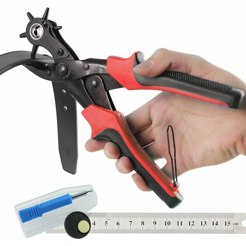 Buon materiale di alta qualità: il punzone in pelle è realizzato in acciaio placcato ad alta resistenza e durevole. Trattare le superfici metalliche con metodi di verniciatura a spruzzo per evitare l'ossidazione. Il pad in ottone adotta il design dello spessore per garantire la sicurezza. L'impugnatura è in plastica PVC, comoda al tatto e facile da usare! Multifunzione: le pinze da taglio hanno 6 diverse dimensioni: 2 mm, 2,5 mm, 3 mm, 3,5 mm, 4 mm e 4,5 mm . È comunemente usato per praticare fori rotondi in pelle, plastica, tela, selle e altri materiali simili. Un perforatore professionale per pelle è particolarmente adatto per la pelle. Design confortevole della maniglia: il perforatore professionale utilizza un meccanismo a doppia leva per risparmiare forza. Questo design ha le caratteristiche di ammortizzazione e antiscivolo, che è ergonomico e fa bene ai polsi. Anche se lo usi per ore senza causare dolore al polso. La scelta ideale per te. Facile da usare: la testa del punzone ha