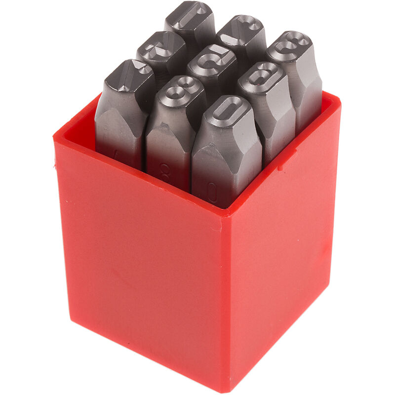 Altezza dei carattere = 8mm Numero di pezzi = 9 Contenuto kit = 0 → 8 Punzoni con lettere e numeri. Punzoni manuali per marcatura identificativa permanente Induriti e temprati per garantire una lunga durata e la massima sicurezza Capaci di rientranze fino a 40 Rockwell C di durezza Forniti in scatole di plastica resistenti