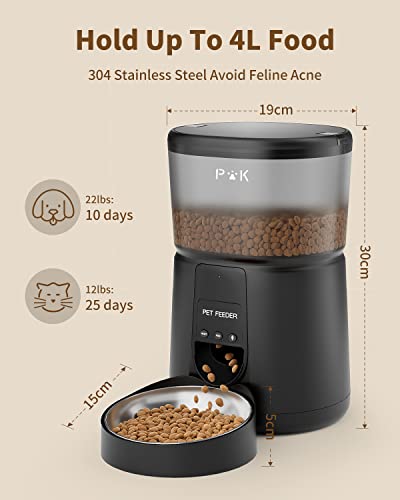 PUPPY KITTY Distributore Automatico Cibo per Gatti e Cani, 2.4G Wifi Mangiatoia Automatica con Timer, Funzione di Registrazione del Suono, Fino a 10 Pasti al Giorno (Nero)