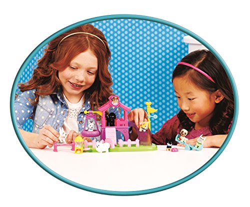 Prendete il vostro cani al parco per un divertimento riempito avventura. Il Puppy in my pocket Puppy Park comprende due cani esclusivo: Tito il English Mastiff e il Labradoodle Jackson. Tito Loves Swinging in altalena con pneumatico e saltando sopra il Hydrant ostacolo. Jackson corre fino a la rampa e scorre verso il suo basso dopo la caccia ai dischi intorno al palo. Insieme I cani giocare sull' altalena e godersi un sorso di acqua dalla vaschetta dell' acqua. Don' t forget per premiare i vostri cuccioli con una delizia dal dispenser. Il più cuccioli al parco il più divertente. Collezionali tutti.