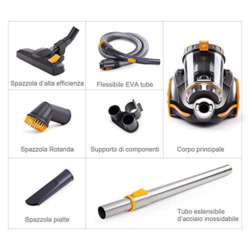 PUPPYOO WP9005B-Golden Life Aspirapolvere a Traino Senza Sacco Multi-Ciclonico Potente Compatto Super Silence System
