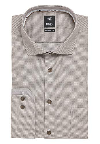 Pure h. tico Pure City 4032-464-Camicia a Maniche Lunghe, Colore: Nero Camicia Elegante, Stampa Marrone Chiaro, M Uomo