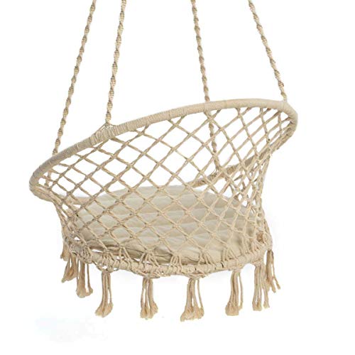 Pureday Amaca da appendere - rotondo con cuscino - con asta - Bianco beige - Portata max. 100 kg