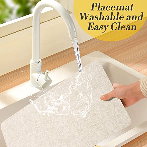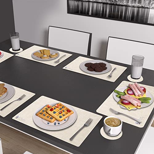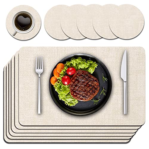 Purejoy Set di 6 Tovagliette e sottobicchieri lavabili tovagliette americane Antiscivolo 43x30 cm Tovagliette in Pelle e Sottobicchieri per tavolo da pranzo sottopiatti (beige)