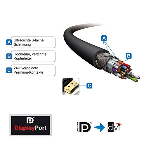 PureLink PI5200-015 Cavo adattatore da DisplayPort a DVI-D (FullK 2K (1080p), Ethernet), (da DisplayPort maschio (20 pin) a DVI-D maschio (18 + 1 pin), certificato, 1,50 m, nero