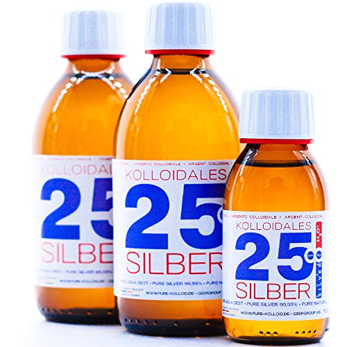 PureSilverH2O 600ml Argento colloidale - 2 Bottiglie da 250 ml/25 ppm Argento colloidale + Bottiglia (100 ml/25 ppm) - 99,99% Puro Argento - Migliore qualità - Made in Germany