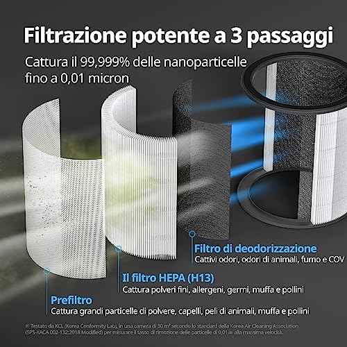 FUNZIONAMENTO RAPIDO E SICURO: imposta l'orario desiderato e lascia che il purificatore d'aria con filtro HEPA compia la sua magia con la comoda funzione timer. Vuoi una brezza rinfrescante al risveglio o una casa perfettamente purificata dopo una lunga giornata? Le tue esigenze di qualità dell'aria saranno sicuramente soddisfatte ogni volta che ne avrai bisogno. Proteggi i tuoi cari con il blocco bambini integrato per una tranquillità garantita durante il funzionamento del purificatore d'aria.