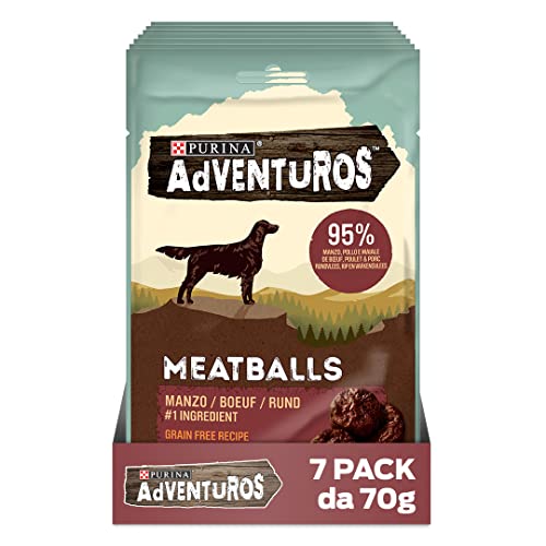 Purina Adventuros High Meat Meatballs Snack Cani, 7 Confezioni da 70g, 1 Unità (Confezione da 7)