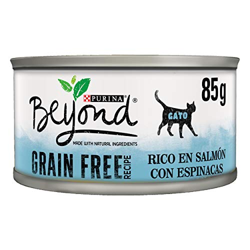 Purina Beyond Umido Gatto Grain Free Ricco in Salmone con Spinaci, 12 Lattine da 85 g Ciascuna, Confezione da 12 x 85 g