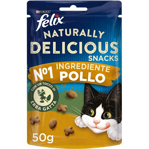 Purina Felix Naturally Delicious snack gatti ricco in pollo con un tocco di erba gatta