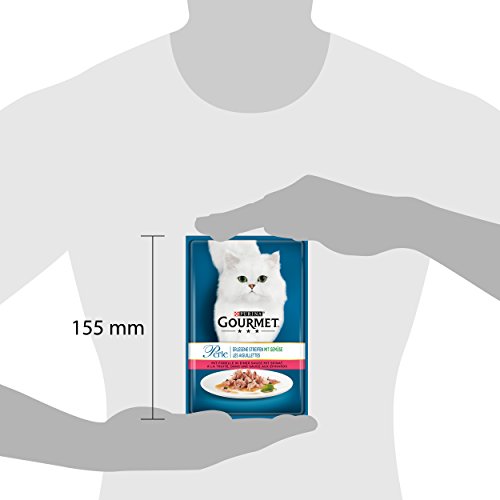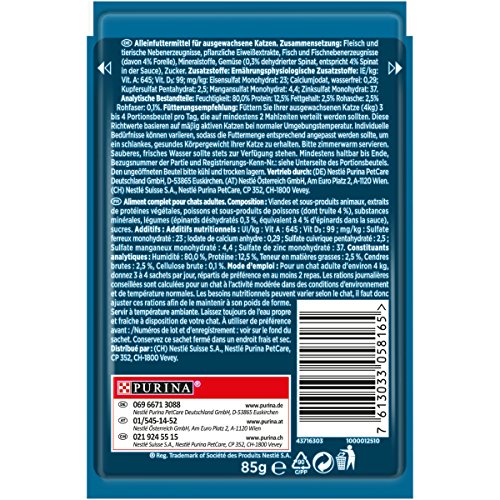 PURINA GOURMET Perle Erlesene strisce con verdure e cibo per gatti bagnato, con trota e spinaci, confezione da 24 (24 x 85 g)