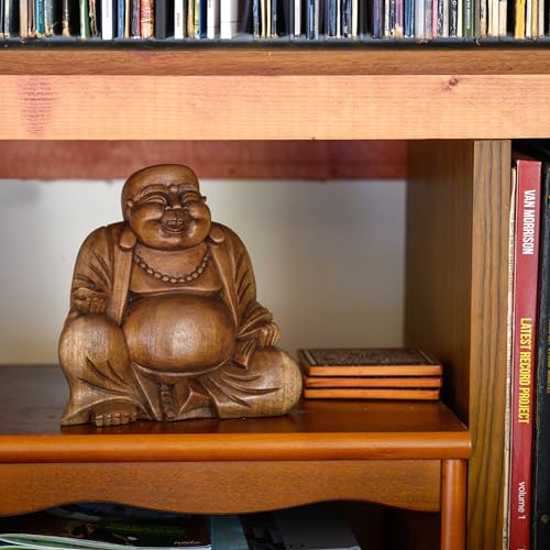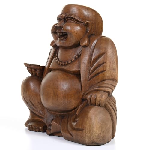 Buddha ridente in legno massiccio.