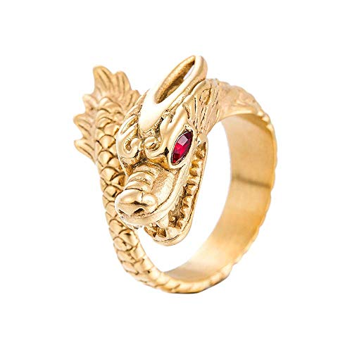 Purmy Anello Drago Acciaio Inossidabile Placcato Oro,Vintage Jewels Hip Hop Punk Rock per Uomo or Donna Dimensione 22