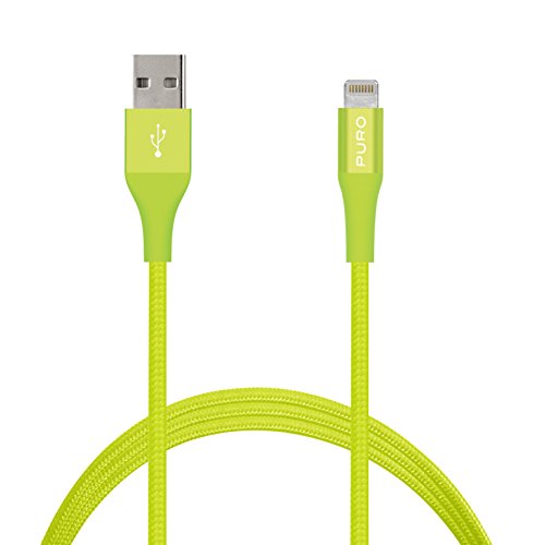 PURO CAPLTFABRIC2GRN Cavo MFI in Tessuto e Connettore Alluminio per Dispositivi Lightning, 2.4A, 1 m, Verde Lime