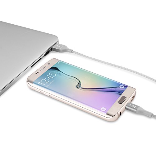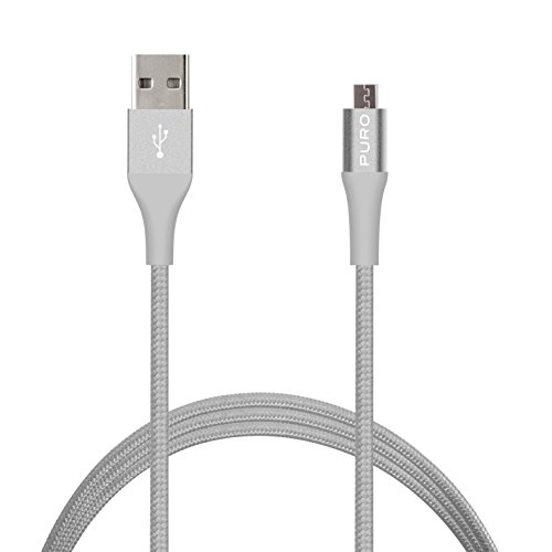 Puro CMICROFABRIC2SIL Cavo in Tessuto e Connettore in Alluminio per Dispositivi Micro USB, 2.4A, 1 m, Argento