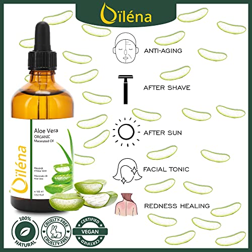 Puro olio macerato di aloe vera · Olio per corpo, viso e capelli all'aloe vera · Olio naturale per il massaggio del corpo · Idratante all'aloe vera · 100 ml