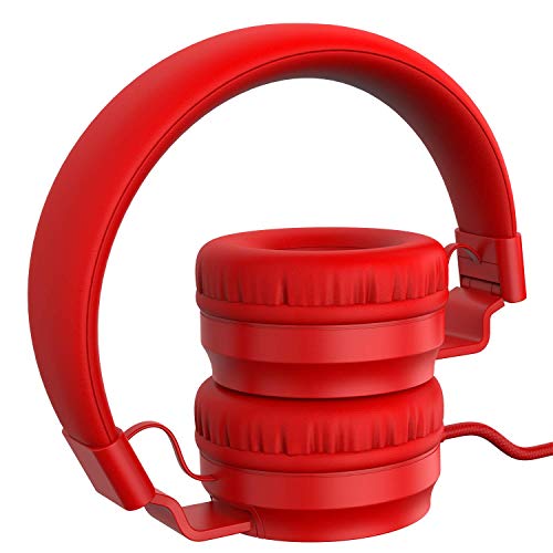Puro Sound Labs PuroBasic - Cuffie con cavo per bambini, pieghevoli, regolabili, con microfono, compatibili con smartphone, tablet e PC (rosso)
