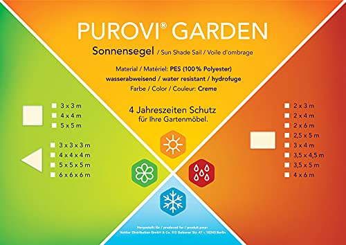 Purovi Vela Parasole Rettangolare | Varie Dimensioni | Schermo UV | in PES Impermeabile | 2 x 4 m