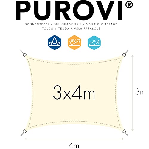Purovi Vela Parasole Rettangolare | Varie Dimensioni | Schermo UV | in PES Impermeabile | 3 x 4 m