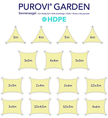 Purovi VELA PARASOLE triangolare da esterni | Varie dimensioni | Schermo UV | In HDPE traspirante | 4m x 4m x 4m