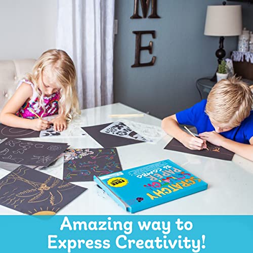 REGALA ORE DI DIVERTIMENTO E CREATIVITÀ A BAMBINI E ARTISTI - Utilizza lo scratcher per grattare la superficie nera opaca e scoprire lo sfondo. Una sorpresa incredibile che offre la possibilità di realizzare creazioni mai viste! Ecco il supporto perfetto per creativi di tutte le età! I bambini non si annoieranno mai grazie a questo passatempo, perfetto per stimolare la loro fantasia!