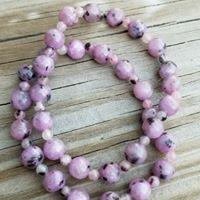 Purple Rice Jade Gemstone Strech Bead Bracelet round 8mm and 4mm beads
