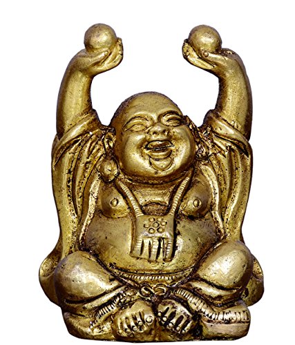 Purpledip 10324 - Statua vintage Buddha che ride, in ottone massiccio, metallo di ottone massiccio, con precursore della saggezza e della ricchezza, utilizzabile come decorazione per la casa per Feng-Shui, finitura dorata (10324)
