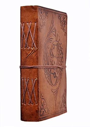 Purpledip Leather Journal (Diary Notebook) 'Koi Fish - Fire & Water (Yin & Yang)': Handmade Paper In Leather Cover For Corporate Gift or Personal Memoir (11325)