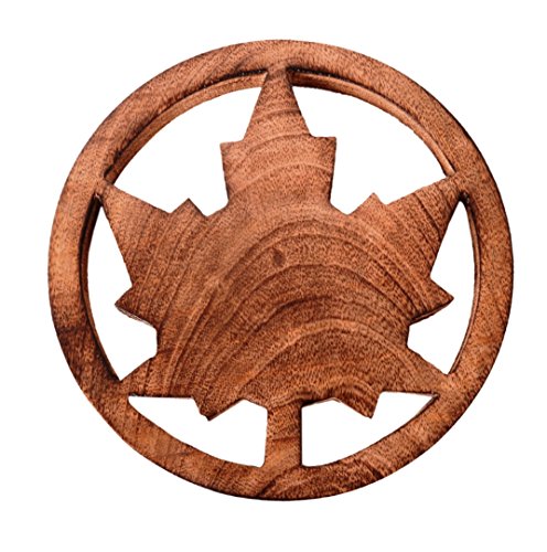 Purpledip Sottopentola in legno con “foglia di acero” intagliata, accessorio da cucina per proteggere il tavolo, 11062