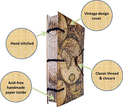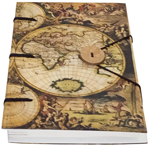 Purpledip Vintage Diary / Journal / Notebook "World Explorers": Naturally Treated Paper Encased In Digital Print Cover With Unique Button & String Closure For Corporate Gift or Personal Memoir (10614)