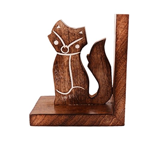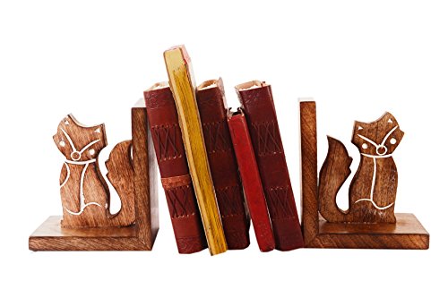 Purpledip Wooden Bookends Stand Holder Bookshelf Organizer 'Foxy Cats': Unique Décor Gift for Book Lovers (11066)