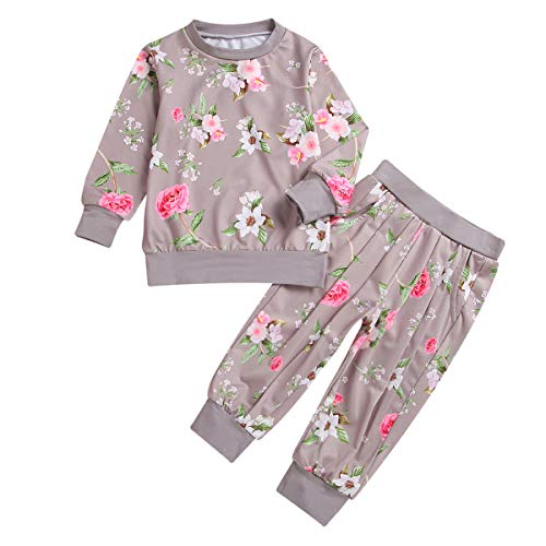 Puseky - Completo tuta pantaloni e felpa a manica lunga, disegno floreale, per neonate e bambine Floreale 2-3 Anni