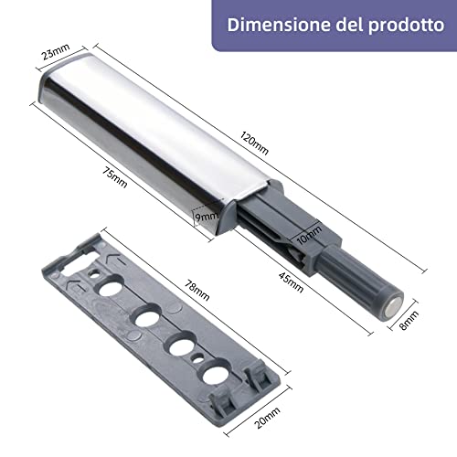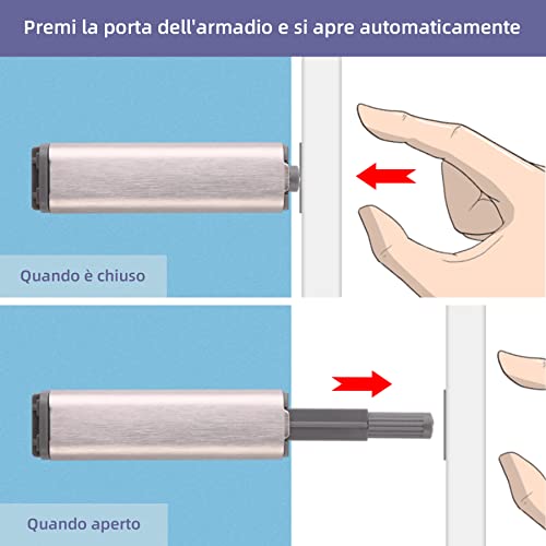 【Ampia Applicazioni】 Sistema di apertura a spinta può essere utilizzato in armadietti, cassetti,l'armadio, libreria, porta, mobile da cucina e altri mobili per la casa. Può sostituire il manico, non ha bisogno del supporto di una maniglia.