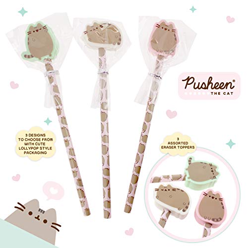 Pusheen - Set di penne e matite | 1 matita con topper e 1 penna con topper | Regali per ragazze | Set di cancelleria | Pusheen il gatto