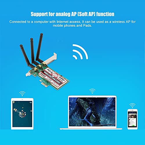 PUSOKEI Adattatore per Server di Rete Wireless Desktop 450 Mbps Scheda di Rete LAN PCI-E Dual Band 2.4G/5G con 3 antenne