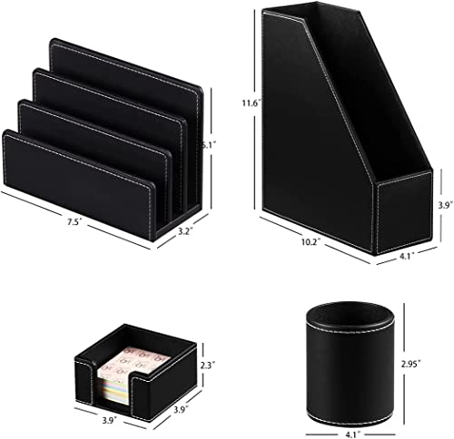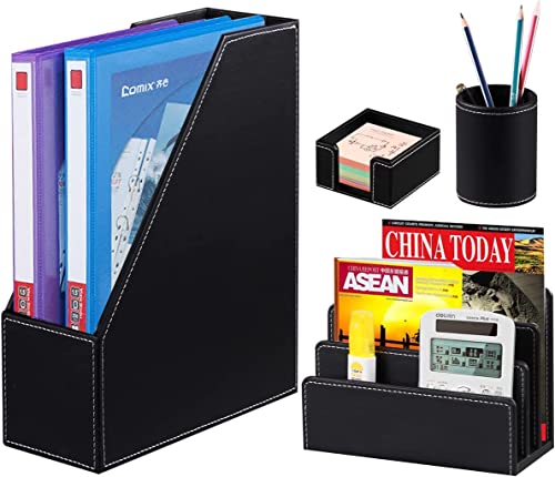 PUSU Set da Scrivania 4 Pezzi,raccoglitore di riviste,portariviste A4, porta lettere con 3 scomparti,Portapenne,Porta memo, Set di Accessori da Scrivania,Elegante e Funzionale, ideale per l'Ufficio